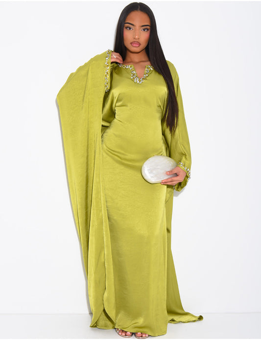 Ayeesha Satin Rhinestone Inner Tie Belt Kaftan