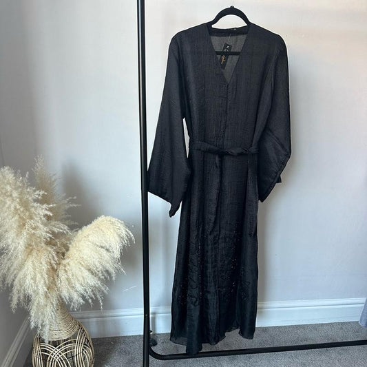 Women's Rhinestone Abaya with Inner Slip and Tie Belt - Islamic wear - One Size