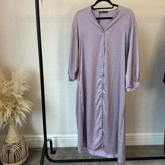 Metallic Diamanté Stud Open Abaya Set with Slip and Hijab, Available in Two Colours