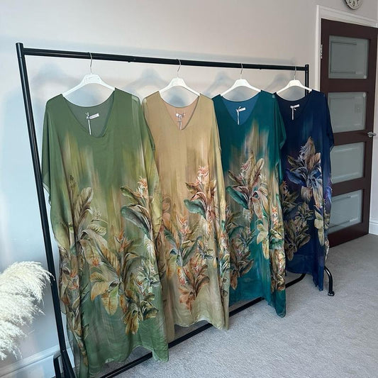 Floral Print Ladies Silk Chiffon Kaftan
