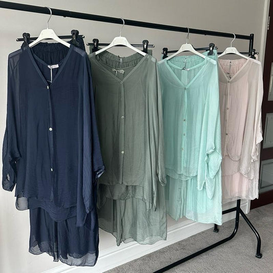 Shimmer two toned Effect Occasional Silky Top and Pleated Trouser Set