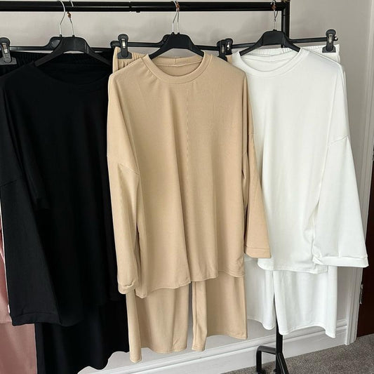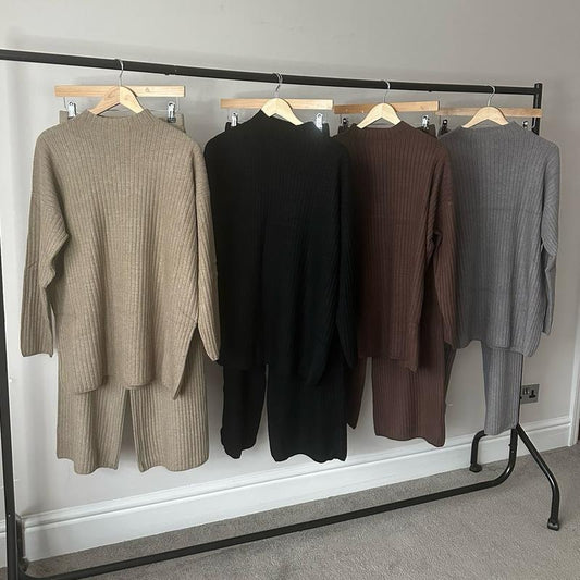 Comfortable Ribbed Knit Co-Ord Set for Women