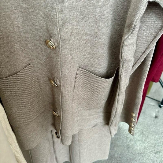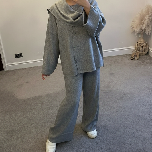 Aminah Premium Button Coord with Pleated Trousers in Soft Knitwear