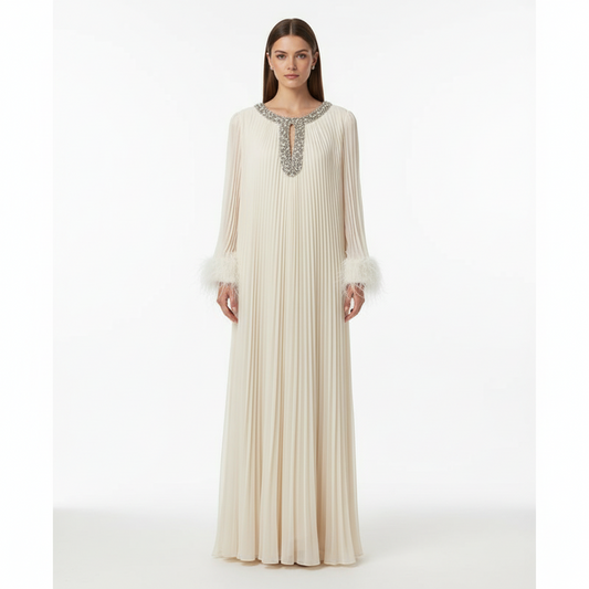 Zeina Elegant Diamanté Pleated Chiffon Formal Dress