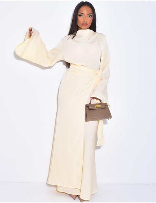 KIKI Side Knot Premium Dress - Elegant Maxi with Bell Sleeves