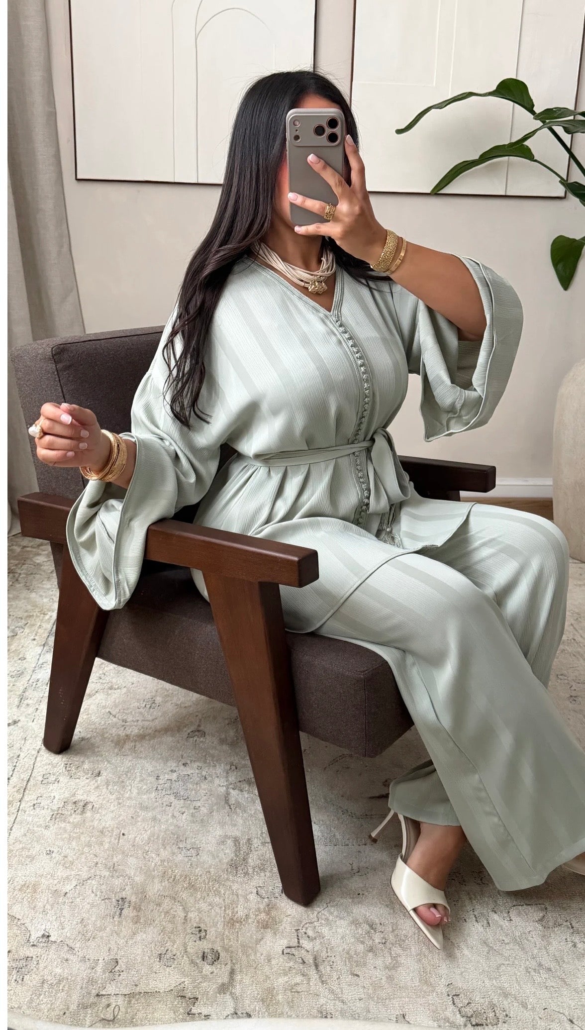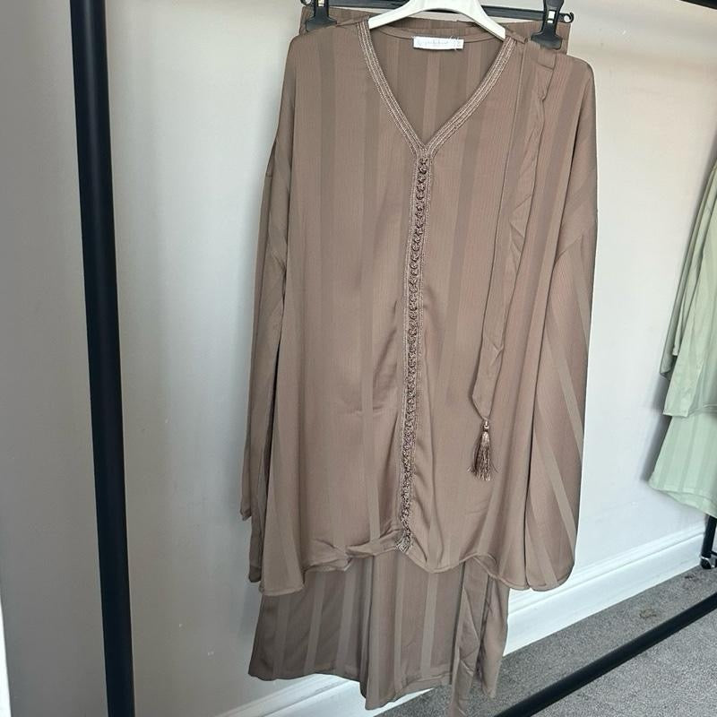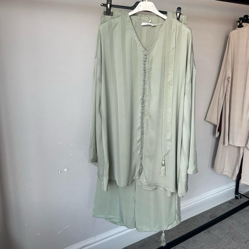 * Moroccan Jabador Work: Intricate detailing on the middle and neckline of the top.