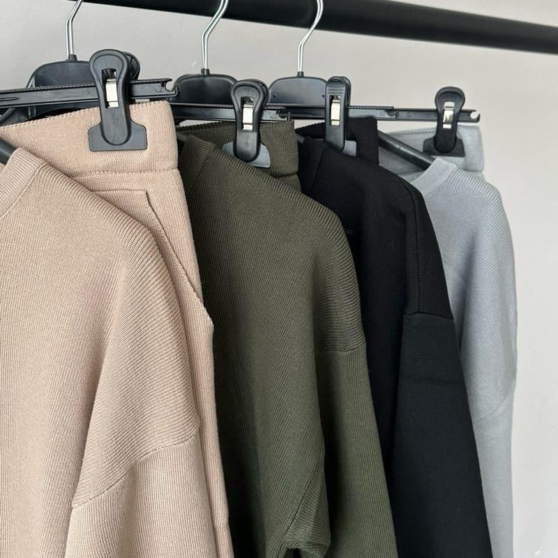 * Elegant Knitwear Set: This premium knit coord set includes a stylish top and pleated trousers with pockets. Perfect for versatile styling options.